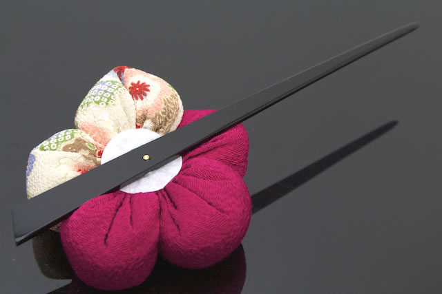 縮緬の生地を使用した、一本挿しのかんざしです。