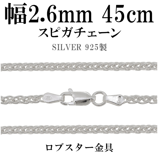 シルバーチェーン ネックレス チェーン スピガチェーン 幅約2.6mm 45cm シルバーアクセサリー シルバー925 銀 シルバー925チェーン チェーンのみ