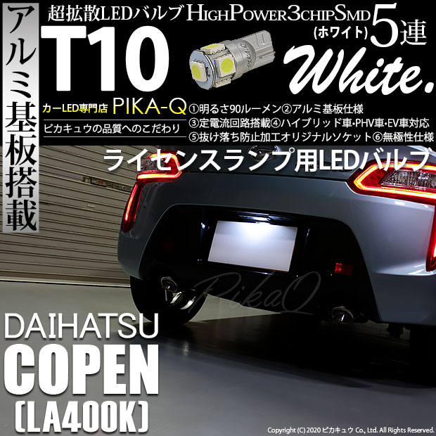 | ピカキュウ,LED専門店,LEDバルブ,LED,SMD,T10,W5W,T10 HIGH POWER 3CHIP SMD 5連ウェッジシングル球,アルミ基板,90lm,長持ち,ホワイト,ライセンスランプ,番号灯,DAIHATSU,COPEN,ダイハツ,2代目,コペン,ローブ,COPEN Robe,エクスプレイ,COPEN XPLAY,LA400K |