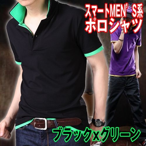 ツートンレイヤードポロシャツ【ブラックxグリーン】 (RON-347 )はこちらをクリック