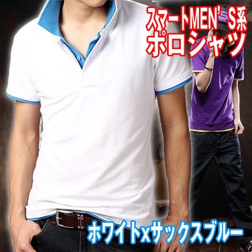 ツートンレイヤードポロシャツ【ホワイトxサックスブルー】 (RON-347)はこちらをクリック