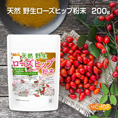 天然 野生ローズヒップ粉末 200g【メール便専用品】【送料無料】 国内製造 チリ山間部に自生ローズヒップ使用 残留農薬検査実施済み [05] NICHIGA(ニチガ)