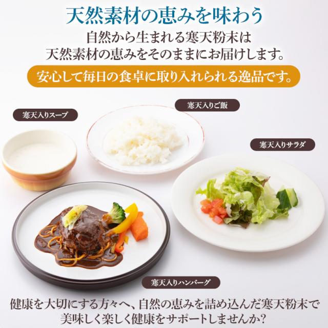 国内製造された粉末寒天は、天草やオゴノリ海草から作られ、植物性食物繊維が成分の約8割と豊富に含んでいます。