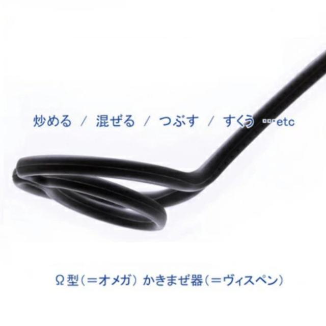 北欧スウェーデンからやってきた万能調理器オメガヴィスペンです。炒めたり、かき混ぜたり、つぶしたり、すくったりと様々な調理がこれ1本で可能です。オメガ部分がボールや鍋底にフィットして、ムラなくかき混ぜることができ、とろみのある料理も隙間がある分、負担なく混ぜることができます。