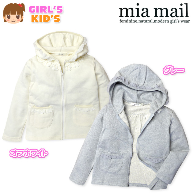 子供服 女の子 フルジップ パーカー 長袖 mia mail レース&フラワーモチーフ 裏毛 女児 キッズ