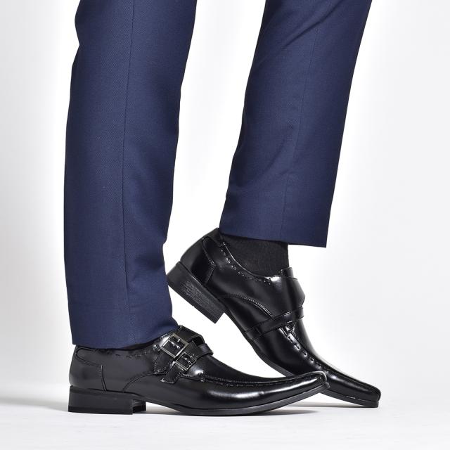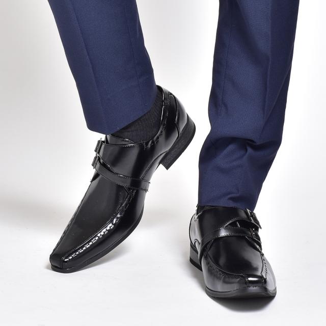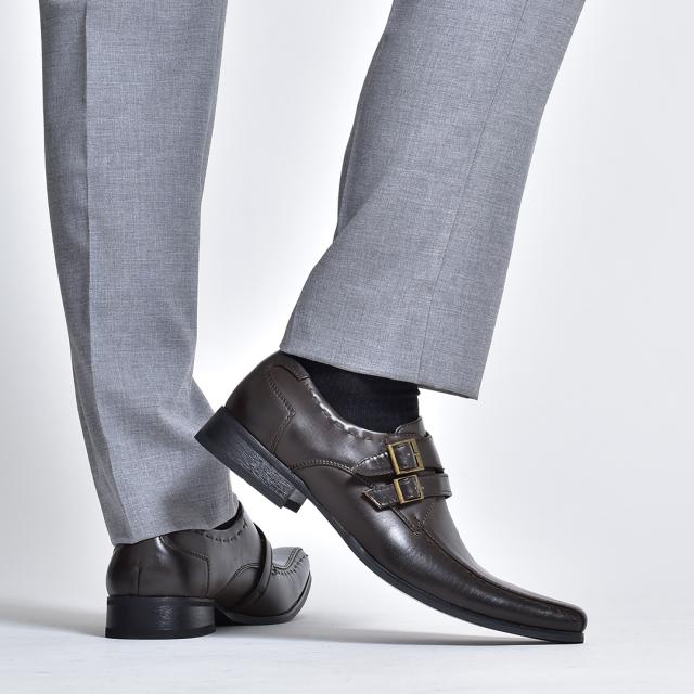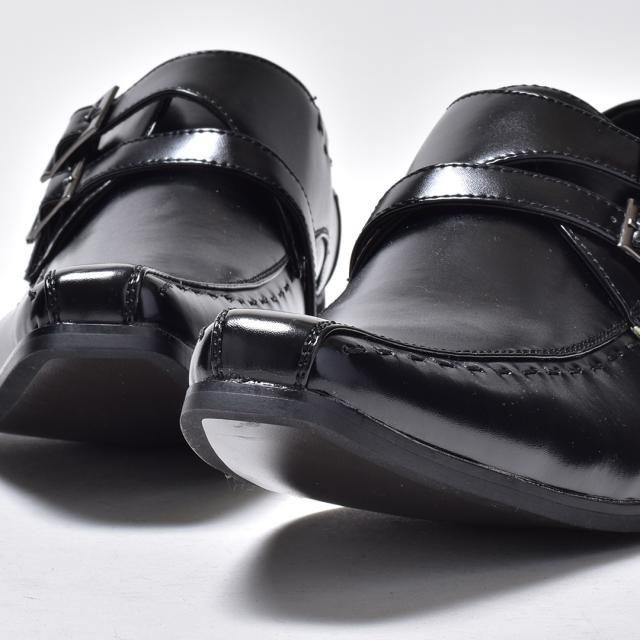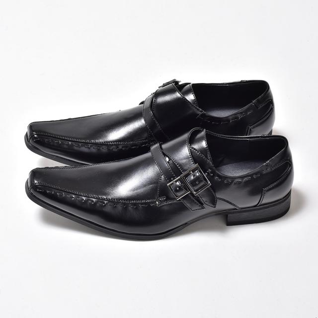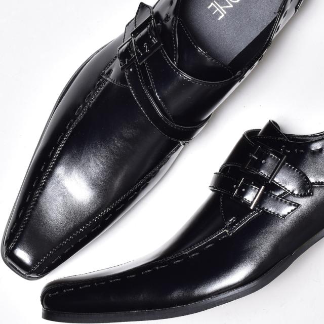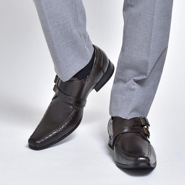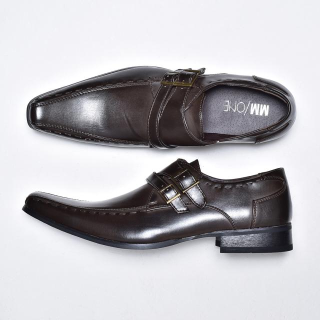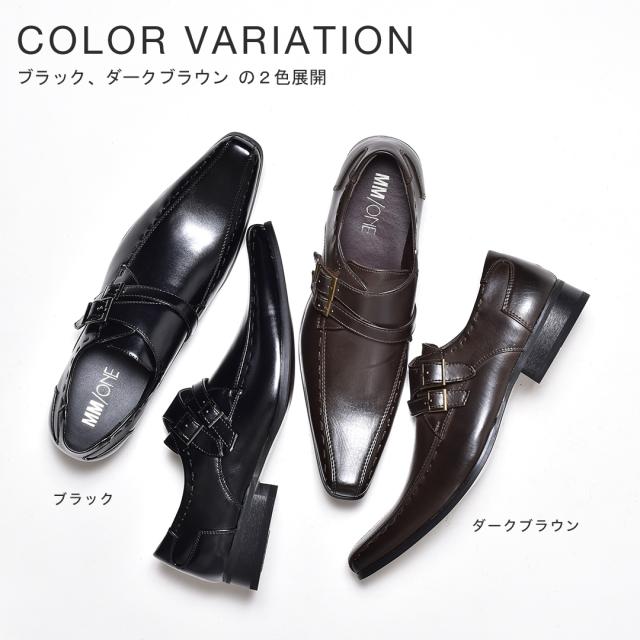 MM/ONE ビジネスシューズ メンズ モンクストラップ スリッポン ドレスシューズ フォーマル 革靴 皮靴 紳士靴の 結婚式 冠婚葬祭 ブラック 黒 ダークブラウン ロングノーズ スクエアトゥ スワールモカシン エムエムワン 送料無料