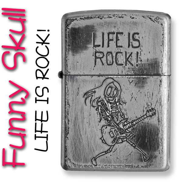 | ZIPPO ジッポー/ファニースカル LIFE IS ROCK (人生はロックだ!) ユーズド加工 | ||