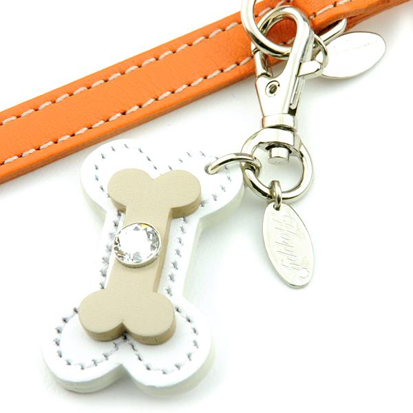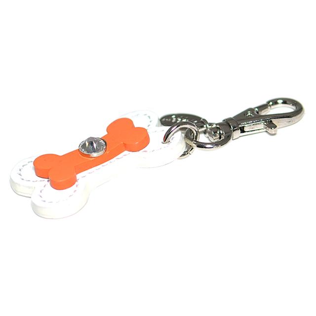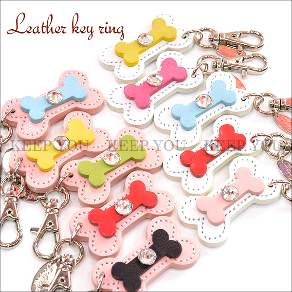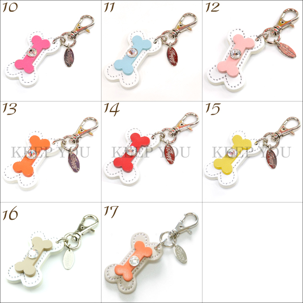 【メール便対応】骨チャーム 牛本革 スワロフスキー付き Happy 全15色【キーホルダー チャーム リード 首輪チャーム キーリング ほね 日本製 ハッピー】HC-11 ┃
