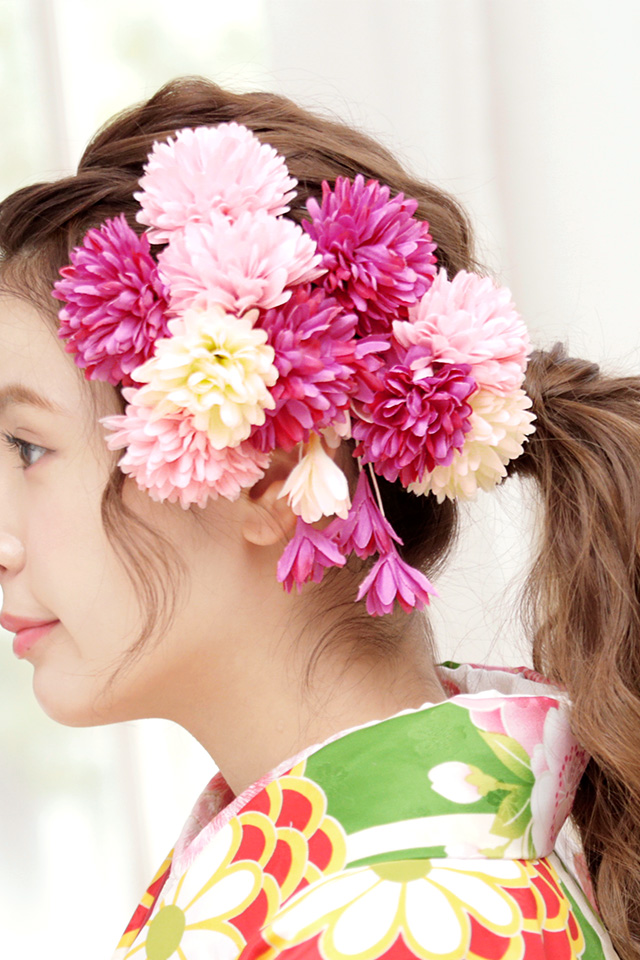 花の鮮やかでオリエンタルな雰囲気が、着物のコーディネートに彩りを添えます。