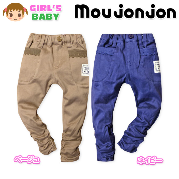 ベビー服 女の子 9分丈 パンツ ボトム Mojonjon ムージョンジョン スキニー 裾シャーリング 女児 ベビー 90cm 95cm
