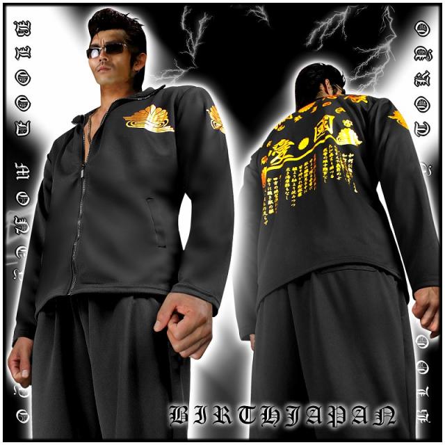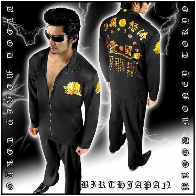 送料無料 14032黒-金 ヤクザブランドセットアップジャージ上下 愛国 悪羅悪羅系オラオラ系半グレヤカラグヤンキー服 悪党の店 バースジャパン BIRTHJAPAN