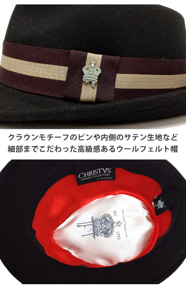 Christys HAT 帽子 正規品 クリスティーズハット フェルト 中折れハット LYNWOOD 56cm ブラック ch-ccs811 秋冬 ハット M メンズ レディース 男女兼用