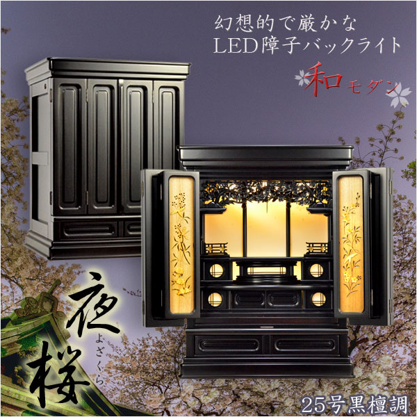 現代的な伝統型仏壇【優美に和むモダン仏壇:夜桜(よざくら) 25号黒檀調】家財便発送無料