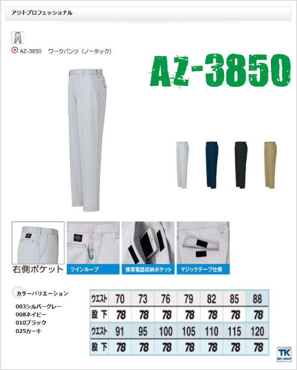 作業ズボン AZITO プロフェッショナル 春夏 作業服 作業着