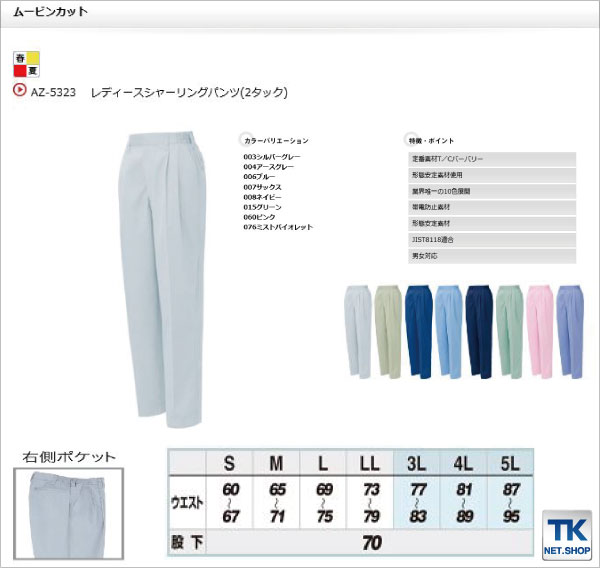 作業ズボン レディースパンツ 2タック AITOZ ムービンカット 春夏 作業服 作業着 アイトス スラックス az-5323