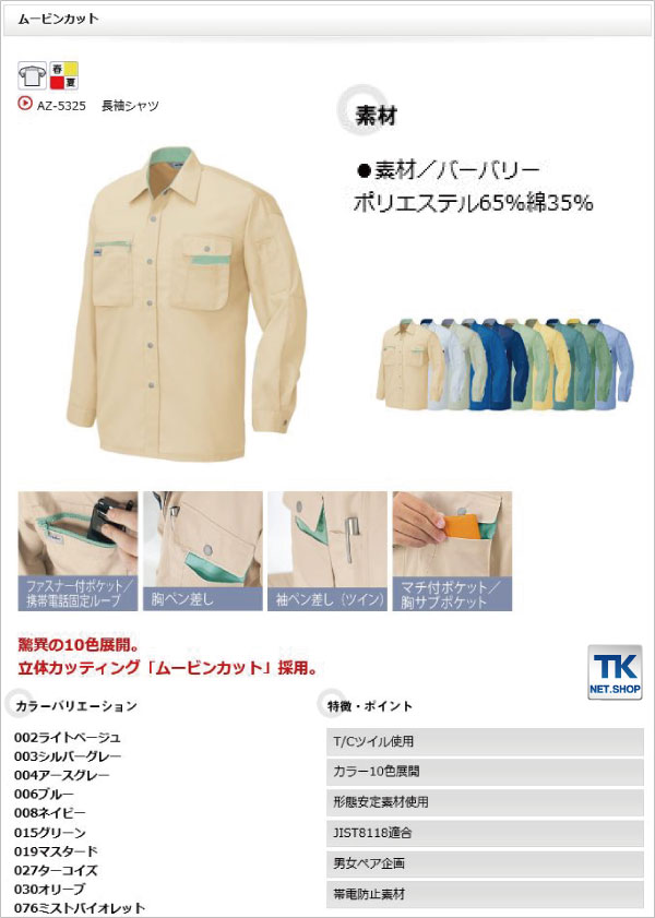 長袖シャツ 作業シャツ AITOZ ムービンカット 春夏 作業服 作業着