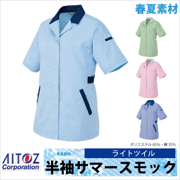 レディース 半袖スモック AITOZ ムービンカット 春夏 作業服 作業着