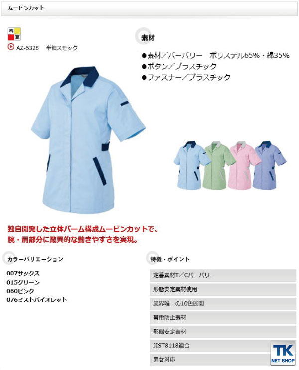 レディース 半袖スモック 作業ジャンパー AITOZ ムービンカット 春夏 作業服 作業着 アイトス az-5328