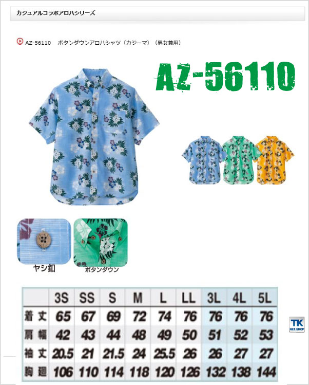 アロハシャツ ボタンダウン カジーマ イベント 大売出し アミューズメント アイトス 半袖シャツ 春夏 az-56110