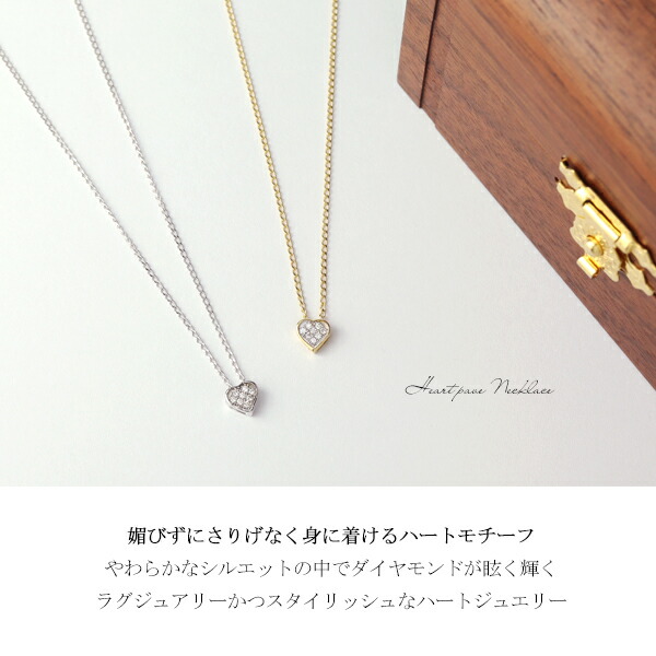 選べる2カラー K10ゴールド 天然ダイヤモンド パヴェ ハート ネックレス 10金 10k イエローゴールド ホワイトゴールド YG WG かっこいい