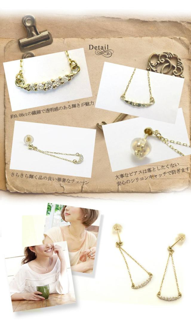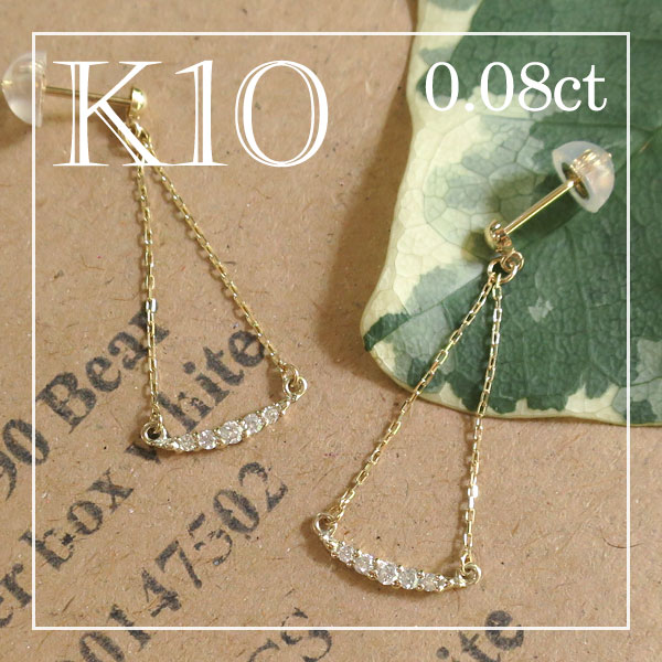 【送料無料】《me. luxe》 K10 揺れる ダイヤモンド ライン スタッド ピアス(2P)【アリゼ】