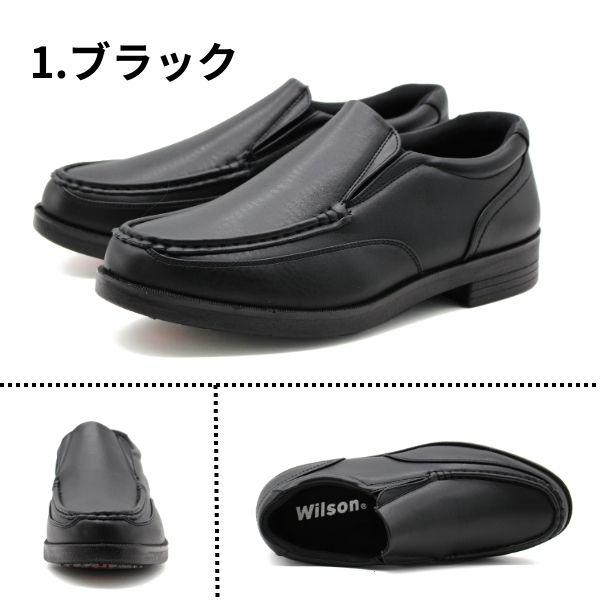 ビジネスシューズ メンズ コンフォート スリッポン スニーカー 革靴 靴 幅広 4E 軽量 軽い 黒 ブラック クッション 履きやすい 仕事 通勤 オフィス ワーク 防滑 疲れにくい ウィルソン Wilson 1602 春新作