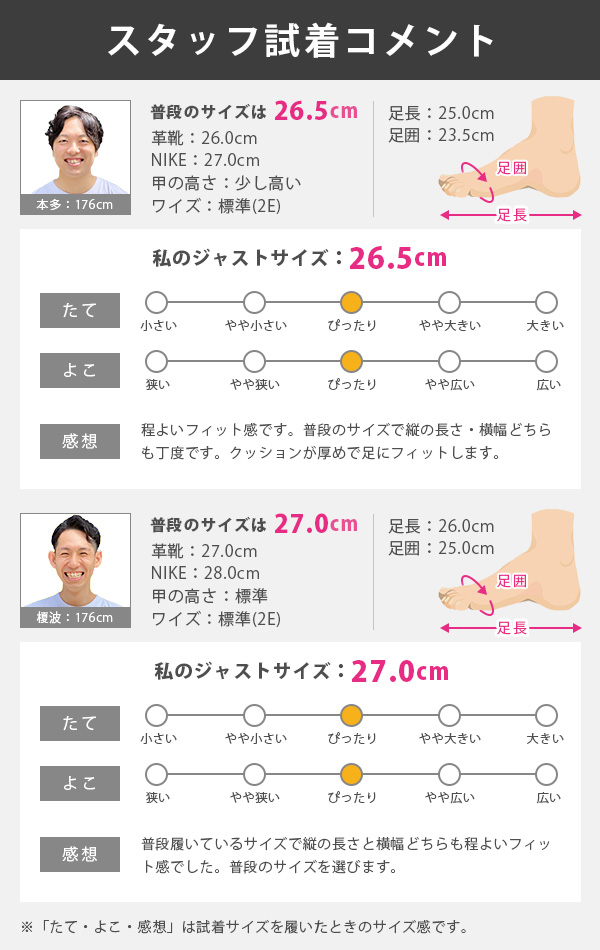 【男性スタッフmoto 普段のサイズは、革靴26.0cm/日本製スニーカー26.5cmです】