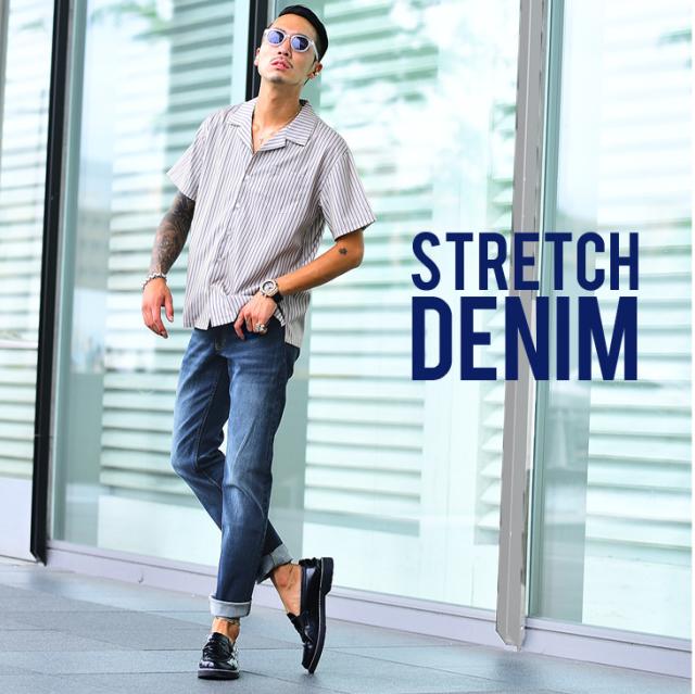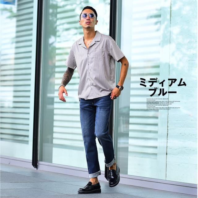 スキニー デニム メンズ ジーンズ ストレート スキニーパンツ スキニーデニム ストレッチ ストレッチデニム パンツ ジーパン 大きいサイズ ゆったり XL LL 黒 ブラック ブルー ネイビー 色落ち サーフ系 オラオラ系 春 春新作 新作 春夏