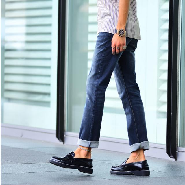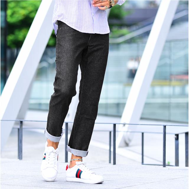 ストレートシルエットなので折り返してアンクル丈にしてはいても今っぽくて◎