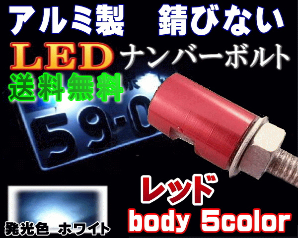 アルミナンバーボルト 赤 【メール便 送料無料】 レッド LEDナンバーボルト 汎用 防水 バイク LEDナンバー灯ボルト LED内臓ボルト 汎用品 ナンバー灯 ボルト LED
