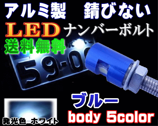 アルミナンバーボルト 青 【メール便 送料無料】 ブルー LEDナンバーボルト 汎用 防水 バイク LEDナンバー灯ボルト LED内臓ボルト 汎用品 ナンバー灯 ボルト LED