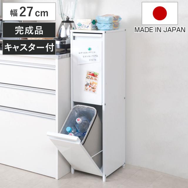 分別ゴミ箱 幅27cm 15リットル2分別 スチール製 ダストボックス キャスター付 ( 分別 ごみ箱 キッチン 資源ごみ すき間 収納 ホワイト 資源ゴミ ゴミ箱 ダストBOX アジャスター付 )