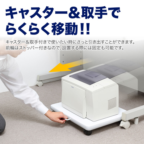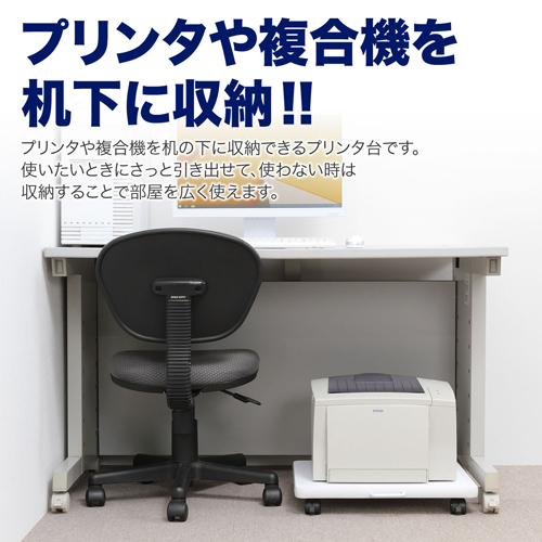 ●小型レーザープリンタや複合機を机の下などに収納できるプリンタ台です。●プリンタを机下に置く事で、デスクを広く使うことが出来ます。