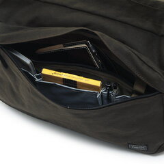 PORTER!街歩き〜通勤・通学まで活躍するショルダー!≪送料無料≫商品:BEAT(ビート)/ショルダーバッグカラー:1.ブラック,2.ベージュ,3.グリーンサイズ(約):横38×縦26.5×マチ15cm【ショルダーベルト】72〜125cm素材:表:9号コットンキャンバス(ワンウォッシュ加工)、一部アクリルオックス内装:一部ターポリン・ナイロンオックス、ポーチは一部ナイロンパイル付属:エルク革重さ(約):660g備考:【メイン開閉】ダブルファスナー外側/ファスナーポケット×1(中にファスナーポケット×1、オープンポケット×3、ペン挿し×2、キーフック×1(取り外し可))内側/ファスナーポケット×1