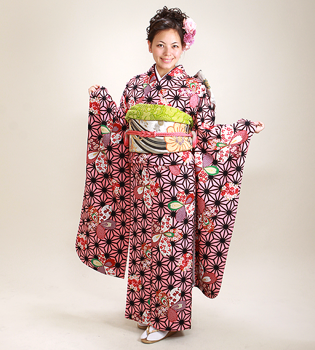 成人式 1月使用 振袖 レンタル ピンク色 麻の葉に花 NT-302-sei 送料無料