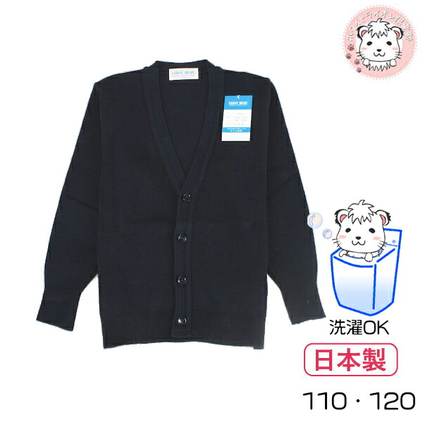 ファーストビート 洗える スクール カーディガン 男の子用 紺 無地 制服 日本製 110cm/120cm | スクールニット FIRST BEAT 小学生 幼稚園 通園 通学 防寒 お受験