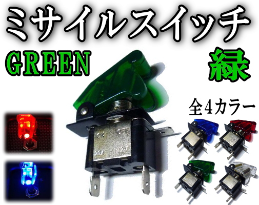 ミサイル (緑) ミサイルスイッチ グリーン 12V対応 ミサイル型トグルスイッチ スイッチカバー LED内臓ONOFFスイッチ 汎用 オンオフスイッチ 埋め込みスイッチ トグル型スイッチ 発射ボタン 取り付け方は簡単 マジェスティビッグスクーター等に
