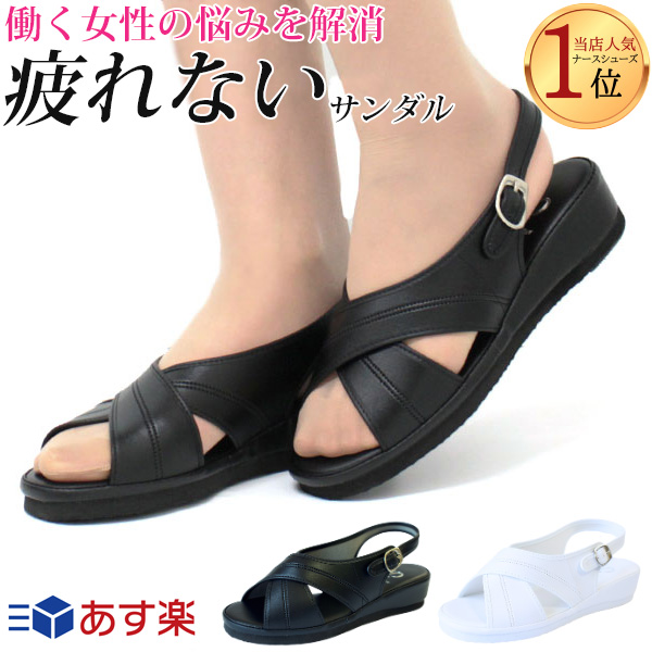 ナースサンダル ナースシューズ レディース 黒 ブラック 白 ホワイト サンダル シューズ 靴 疲れない 疲れにくい オフィスサンダル 軽量 軽い ピュアウォーカー pure walker BASIC PW7602 静か 事務 美脚 おしゃれ ギフト