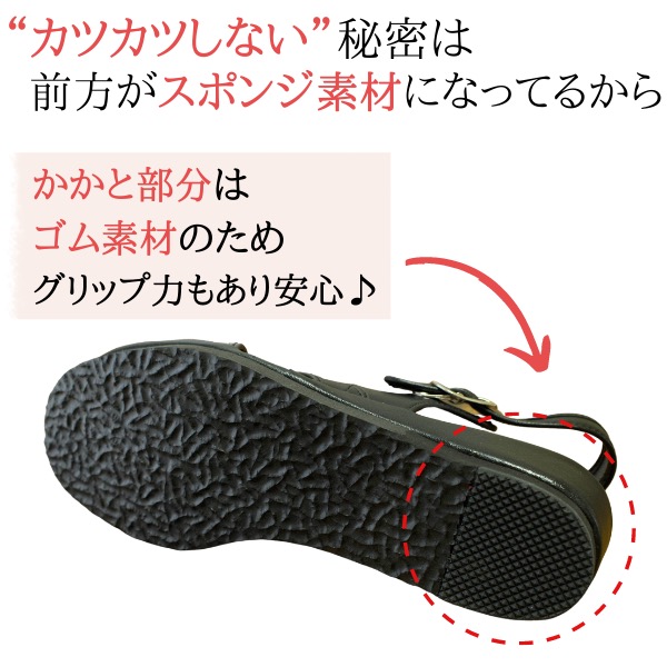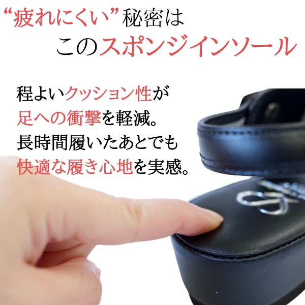 中敷にはゴム入りスポンジを使用し、歩行時の衝撃を吸収!