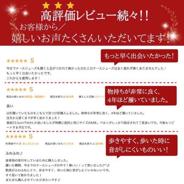 - 仕事用に購入しました! この靴のおかげで長時間の立ち歩き仕事も楽になりました。 また頼みたいです!