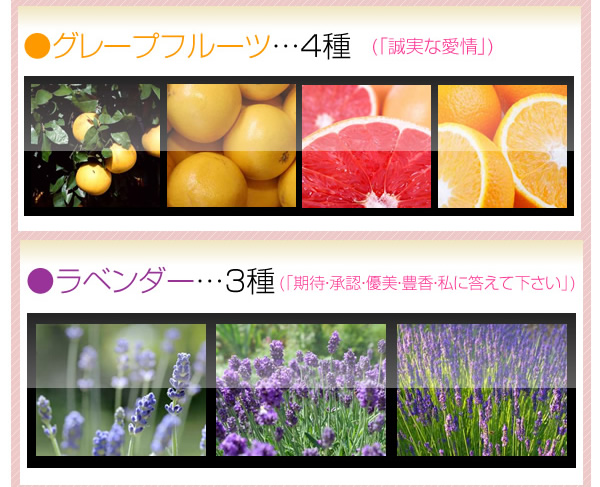 ●トップ:オレンジ、グレープフルーツ、ラベンダー