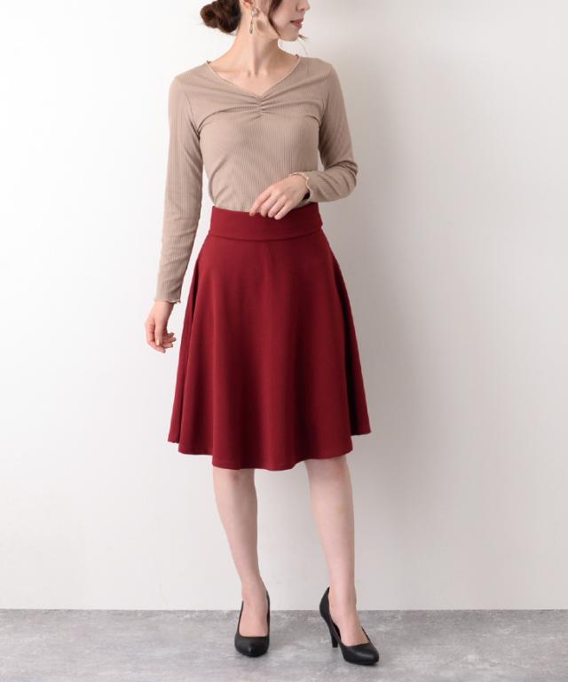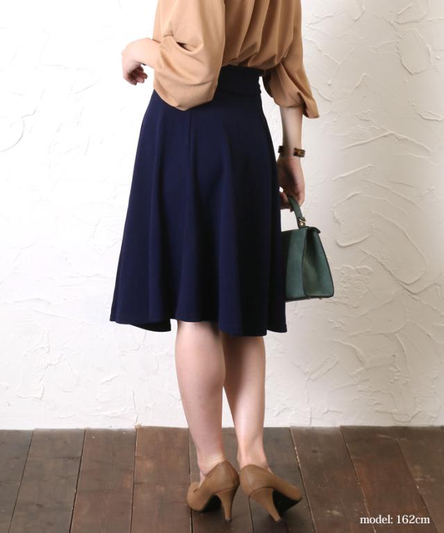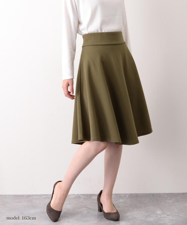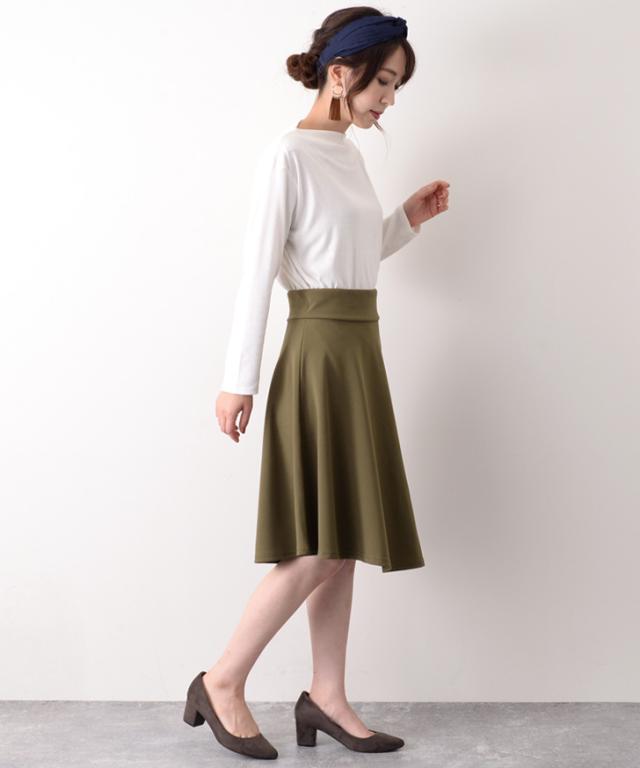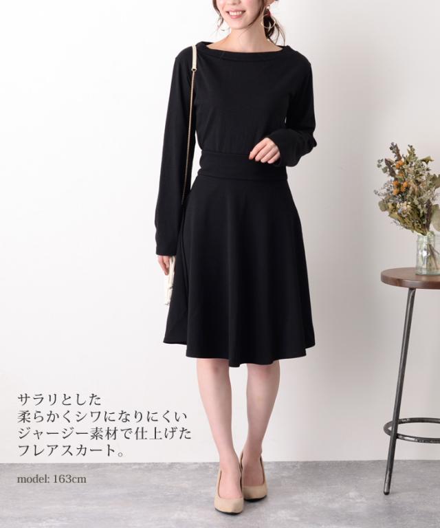 サラリとした柔らかくシワになりにくいジャージー素材で仕上げたフレアスカート。