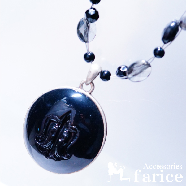 フルールドリス(百合の花の紋章) ラウンドトップ ブラックカットビーズ装飾 ワイヤーチェーン レディース ペンダント ネックレス