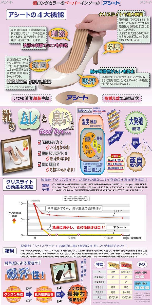 アシート ソフトタイプ Kタイプ 23cm 女性用(25足)[インソール 女性用]