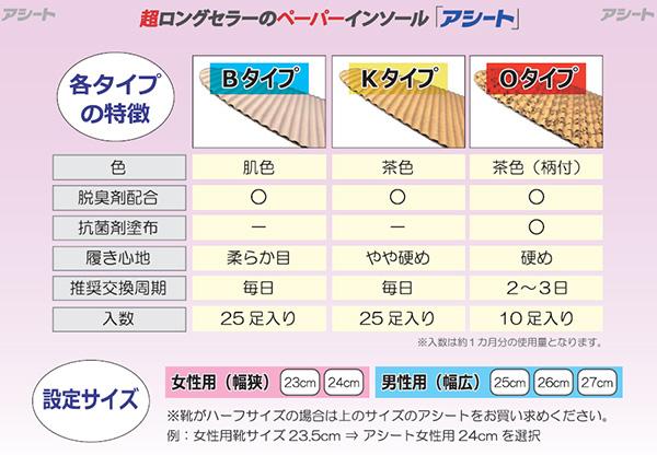 アシート ソフトタイプ Kタイプ 24cm 女性用(25足)[インソール 女性用]