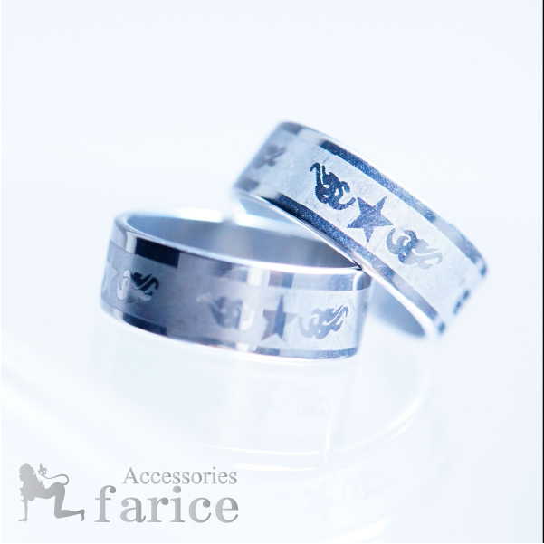 スター(星)&トライバルスネーク(蛇)モチーフ ラウンドデザイン レーザー彫りマット仕上げ メンズ ステンレスリング