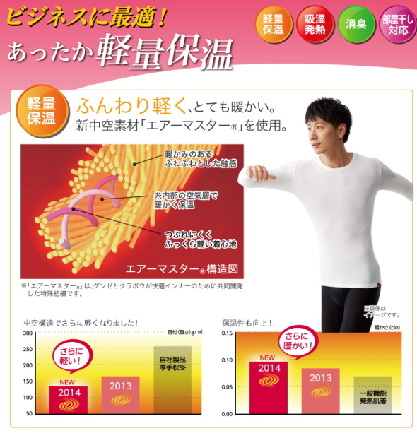ホットマジック素材で薄くてもあったか。ビジネス着の中に付けても邪魔にならない。