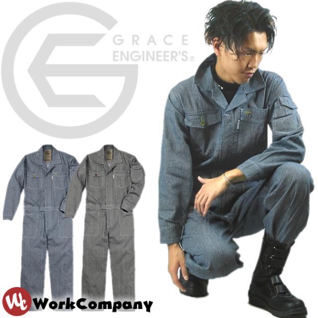 ツナギ ヒッコリー 長袖 メンズ ジャンプスーツ 綿100% グレースエンジニアーズ GRACE ENGINEERS つなぎ ツヅキ服 作業服 作業着 オールシーズン 通年用 年間物 GE-105