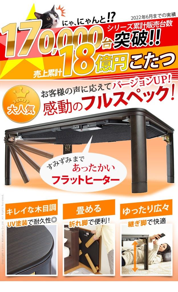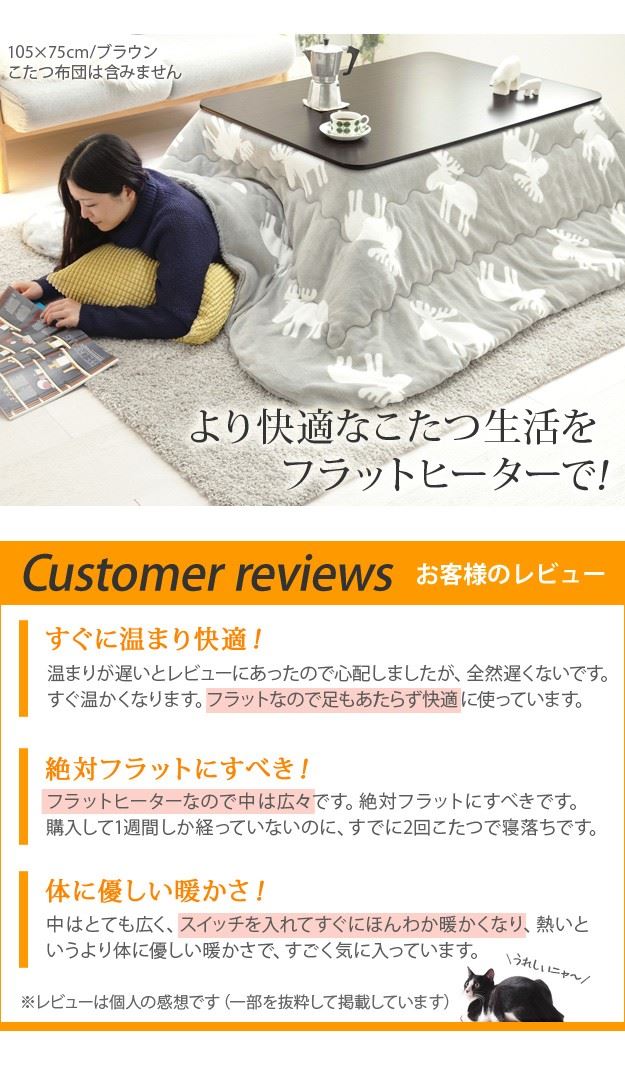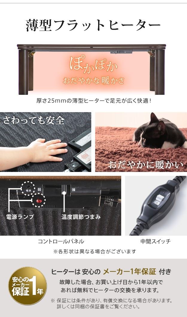 こたつテーブル 折れ脚こたつ 折りたたみ 本体 長方形 105x75cm 薄型フラットヒーター 継ぎ足 高さ調節 ローテーブル