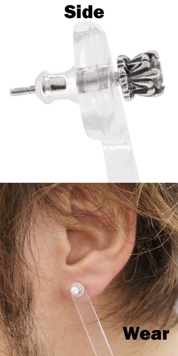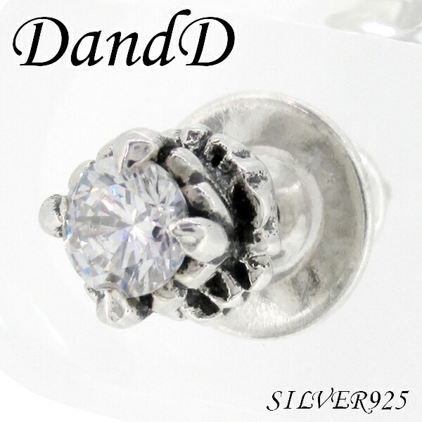 DandD ユリ クラウン ジルコニア シルバー ピアス 1P 片耳用 シルバーアクセサリー メンズ 男性用 925 メンズピアス 男性用ピアス プレゼント 人気
